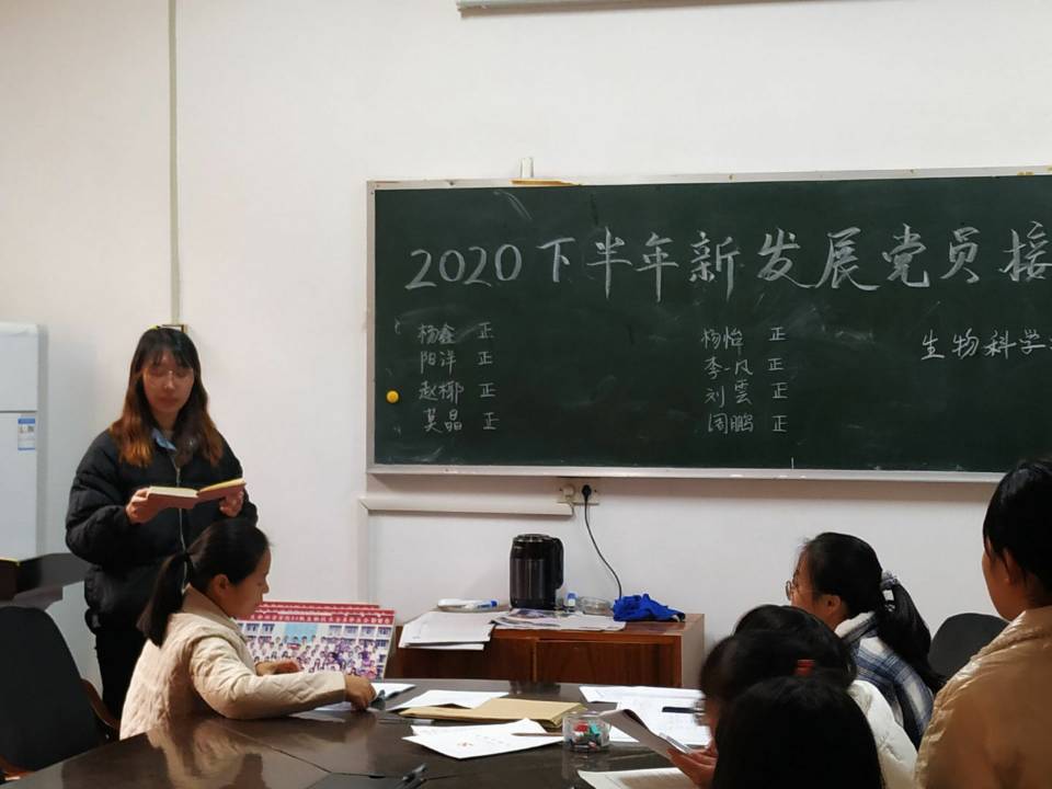 会议严格按照党组织接受预备党员程序,大会开始,发展对象们逐一宣读《入党志愿书》,并向党组织汇报自身对党的认识、入党动机、个人经历以及在校表现等,随后入党介绍人姚丹、朱奕等同志向大会介绍其主要政治思想、学习、工作生活等情况,生科支部书记龙雪鸣同志和生工支部书记蒋本桂同志向大会报告其现实表现的考察情况以及综合政治审查情况,与会党员对发展对象是否符合党员条件发表了意见。大会认为,杨鑫、阳洋、赵椰等同志基本符合党员条件,经与会正式党员投票表决,大会一致同意接收杨鑫、阳洋、赵椰等同志成为中共预备党员。