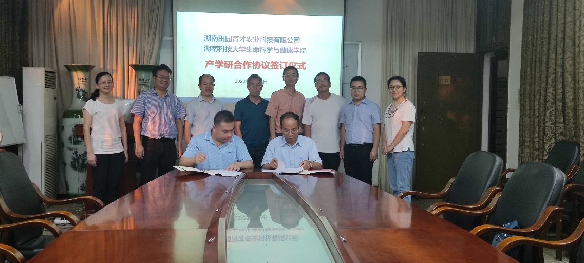 会议尾声,双方代表签订产学研合作协议,并明确进一步发挥学院科研优势及湖南田园育才农业科技有限公司资源优势,促进校企产学研合作,达到双赢效果。