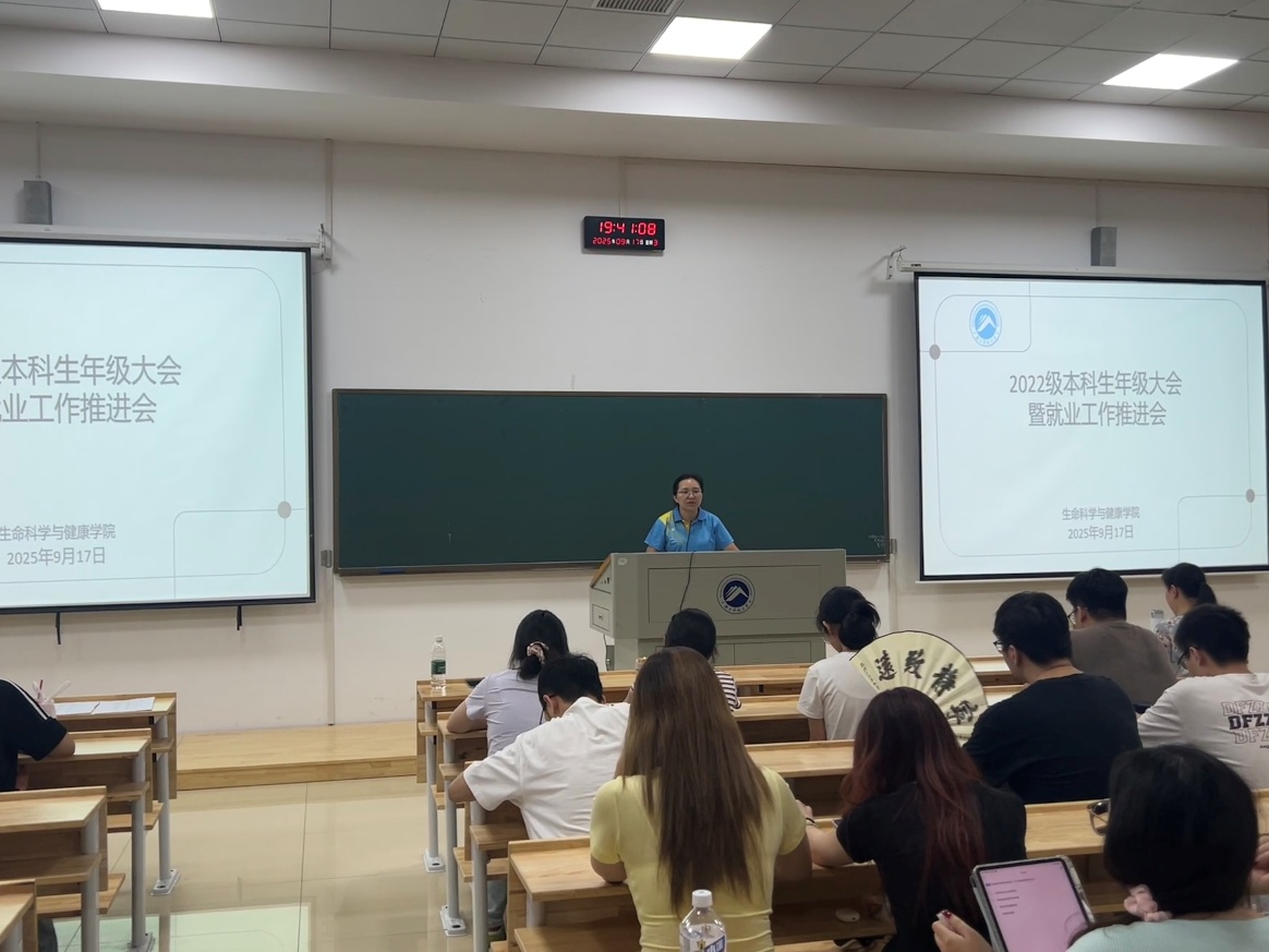 舒艳围绕学习与生活作专题讲话。她结合当前学业阶段特点,提出三点建议:一是夯实专业基础,合理规划时间;二是积极参与实践,提升综合素养;三是保持身心健康,注重劳逸结合。另外,舒艳还以往届优秀毕业生为例,鼓励同学们“把握当下,放眼未来”,并为即将进入人生新阶段的2022级本科生送上诚挚祝福。