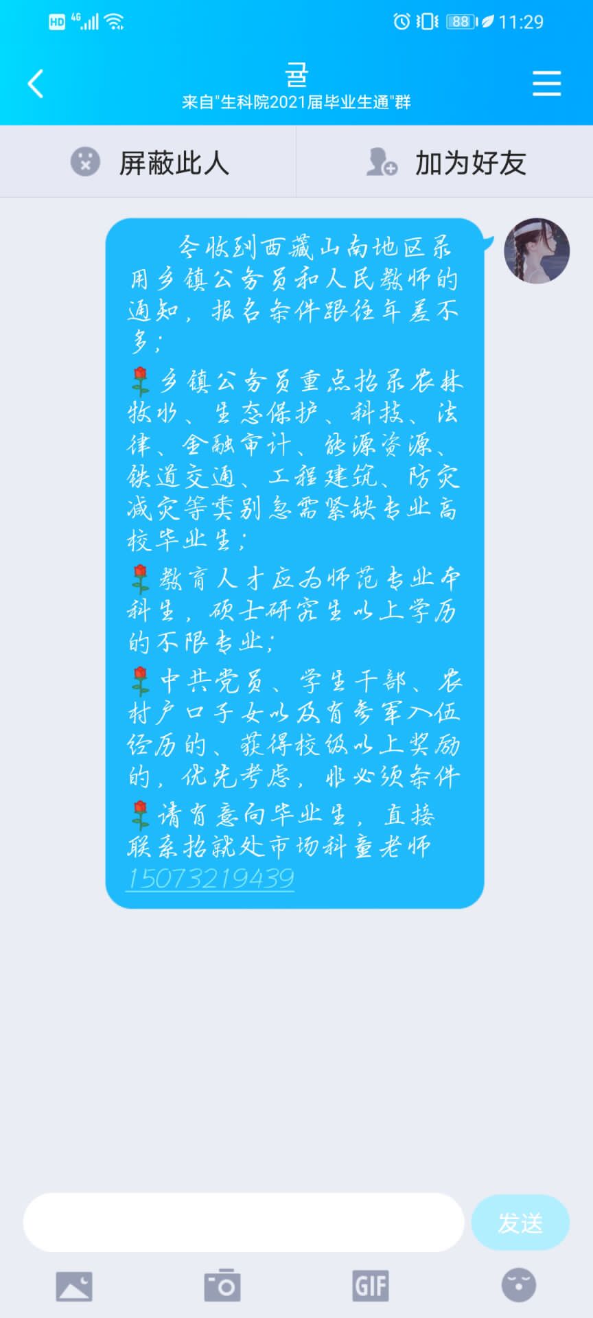 3. 2位就业困难毕业生推荐西藏山南地区录用公务员和教师岗位。