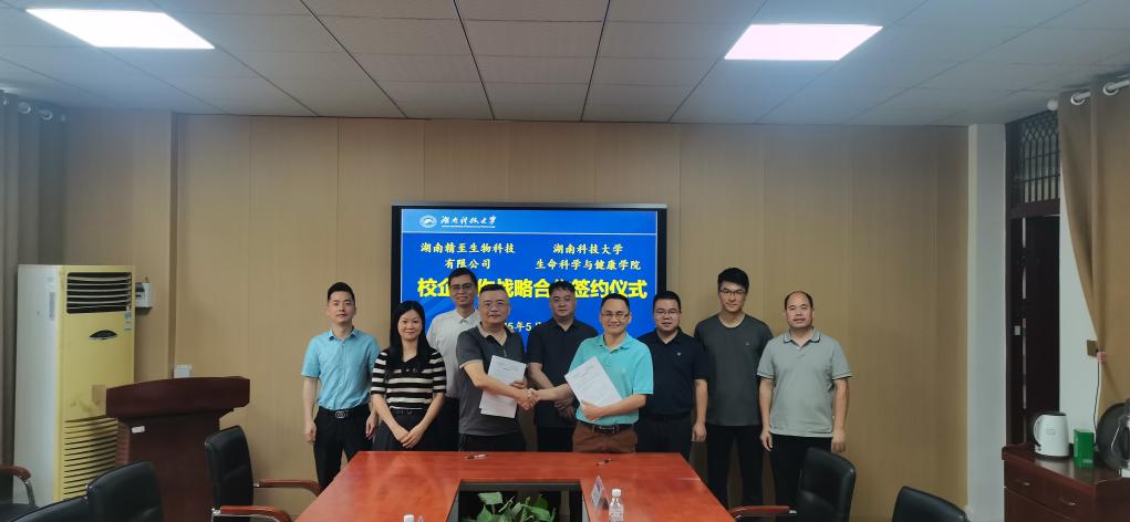 5月29日,泡芙短视频 与湖南精至生物科技有限公司签订合作协议。湖南精至生物科技有限公司负责人郑宇一行、我院陈宇顺等院领导和骨干教师出席会议。泡芙短视频 副院长周定港主持签订仪式。