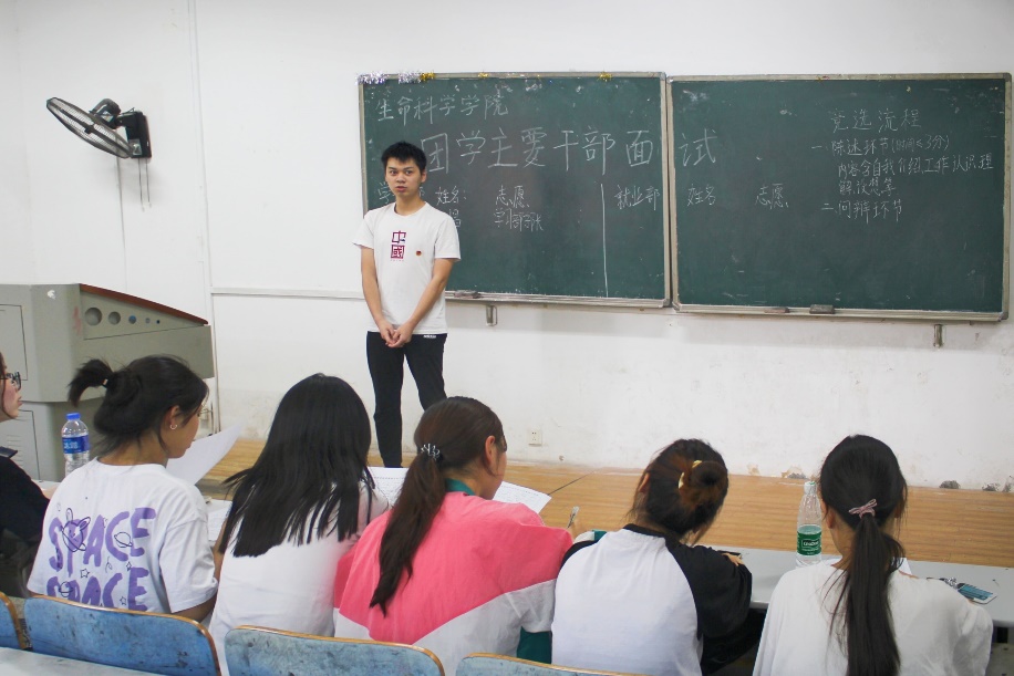 在团委学生会的这一年,是充满美好回忆的一年。部长们准备了多方面的提问:工作态度、时间管理、部门内部关系、个人创新思想、矛盾冲突、部门未来发展趋势等等。委员们结合个人经历和实际情况,发表个人观点,提出解决问题的具体方案,得到了部长们的认可。委员们道出自己想留任的理由,结合自身优点,表达了自己竞选的自信与决心,并对部门的未来做出展望。若他们有幸接任部长们的位置,他们表示会从自身能力、部门凝聚力、宣传力度、各部门间合作这几个方面着重入手,继往开来,共同建设更好的团委学生会。