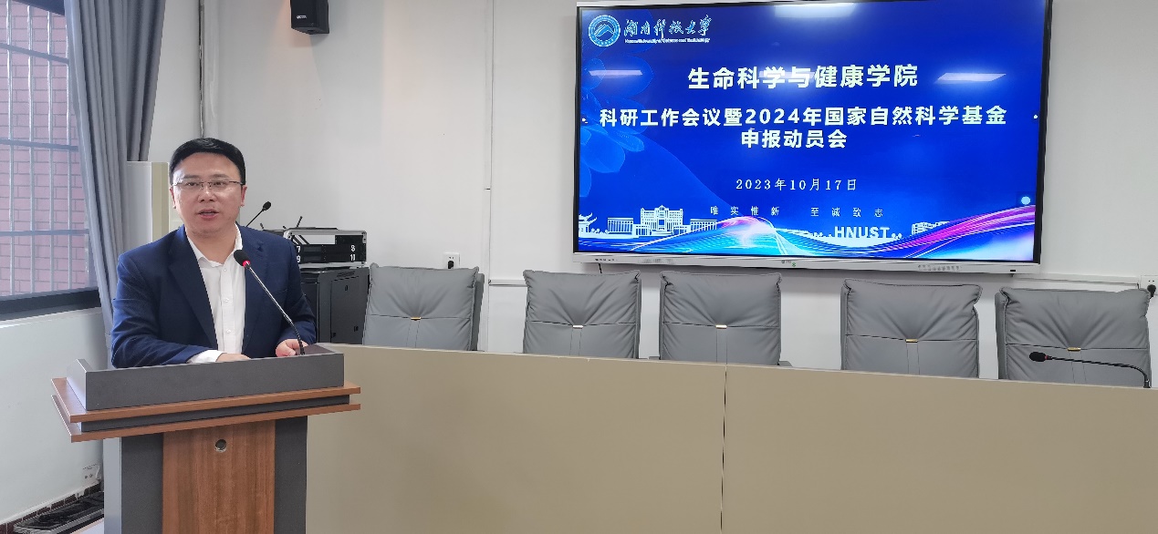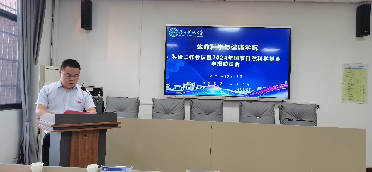 吴金锋副教授进行国自科申报的专题讲座。会议由院党委副书记、副院长龙赢主持,全体教职工参加了动员大会。