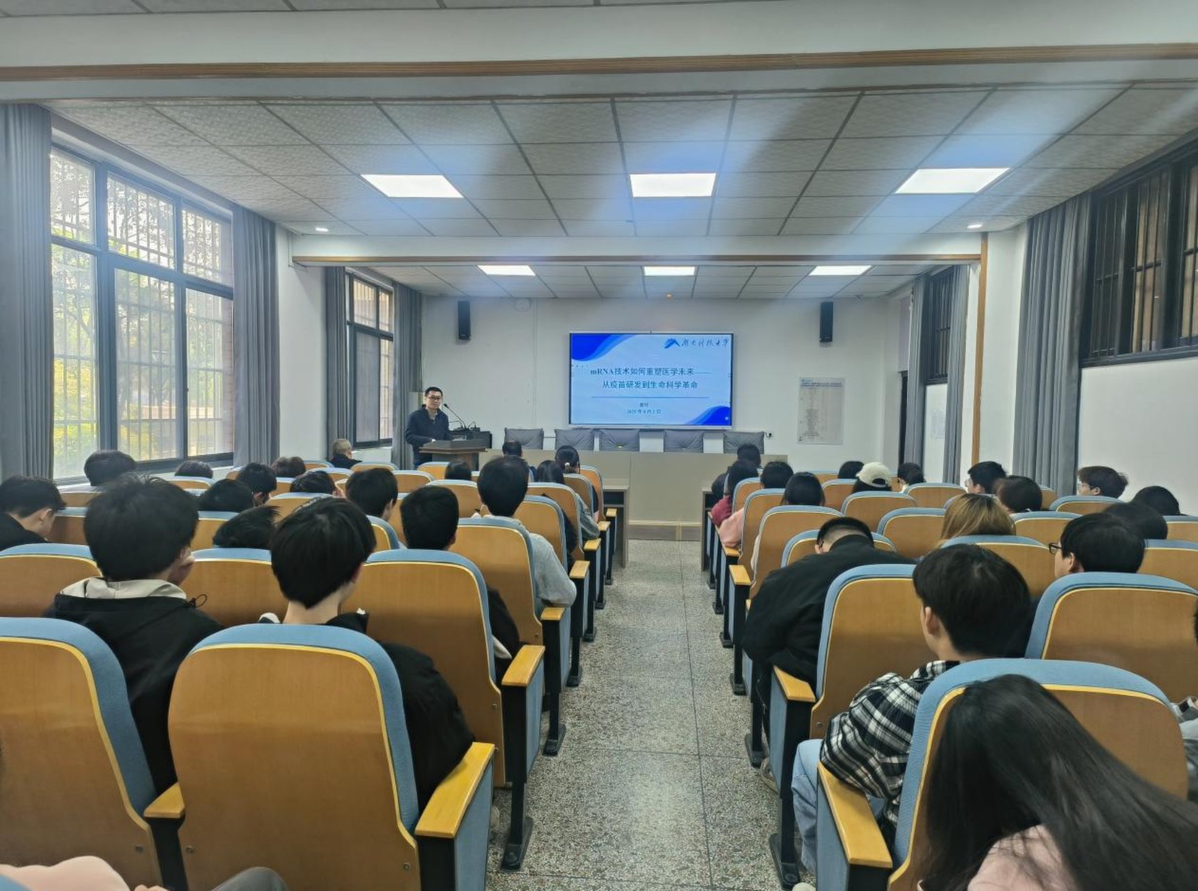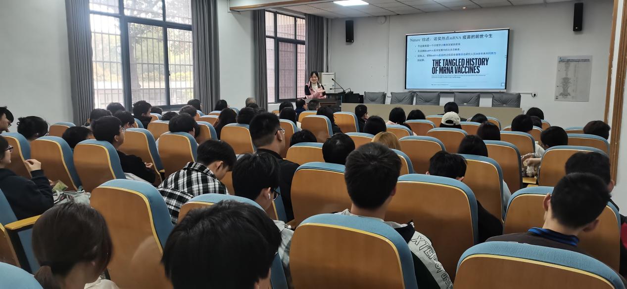 4月2日上午,由本科生院主办、泡芙短视频 承办的“科技人文大讲堂”第80讲《mRNA技术如何重塑医学未来——从疫苗研发到生命科学革命》在生物楼105举行。本次讲座由童婷博士主讲,副院长刘长军主持,泡芙短视频 师生代表参加。