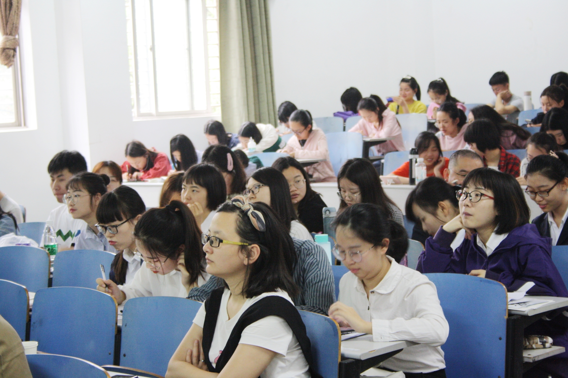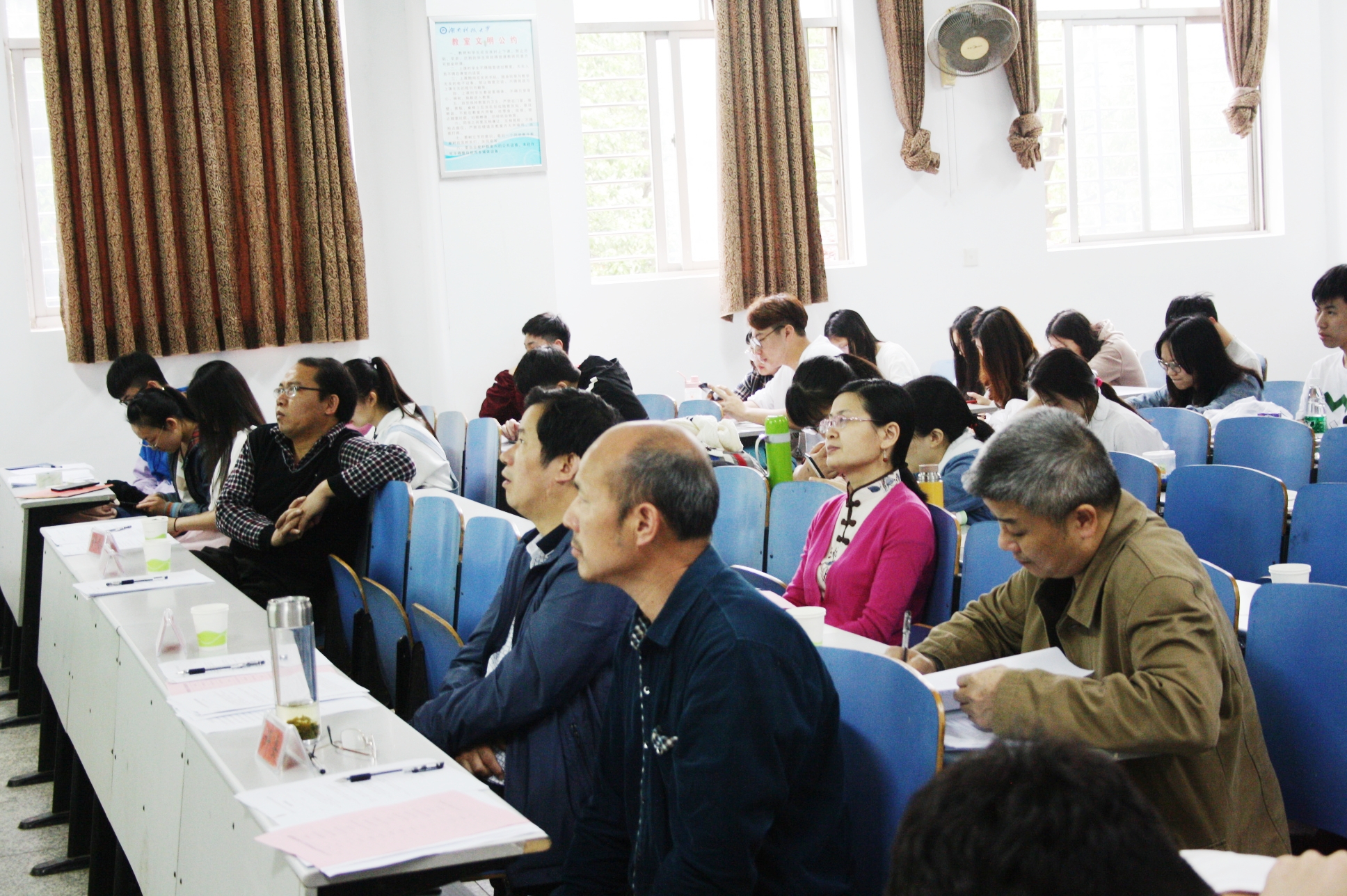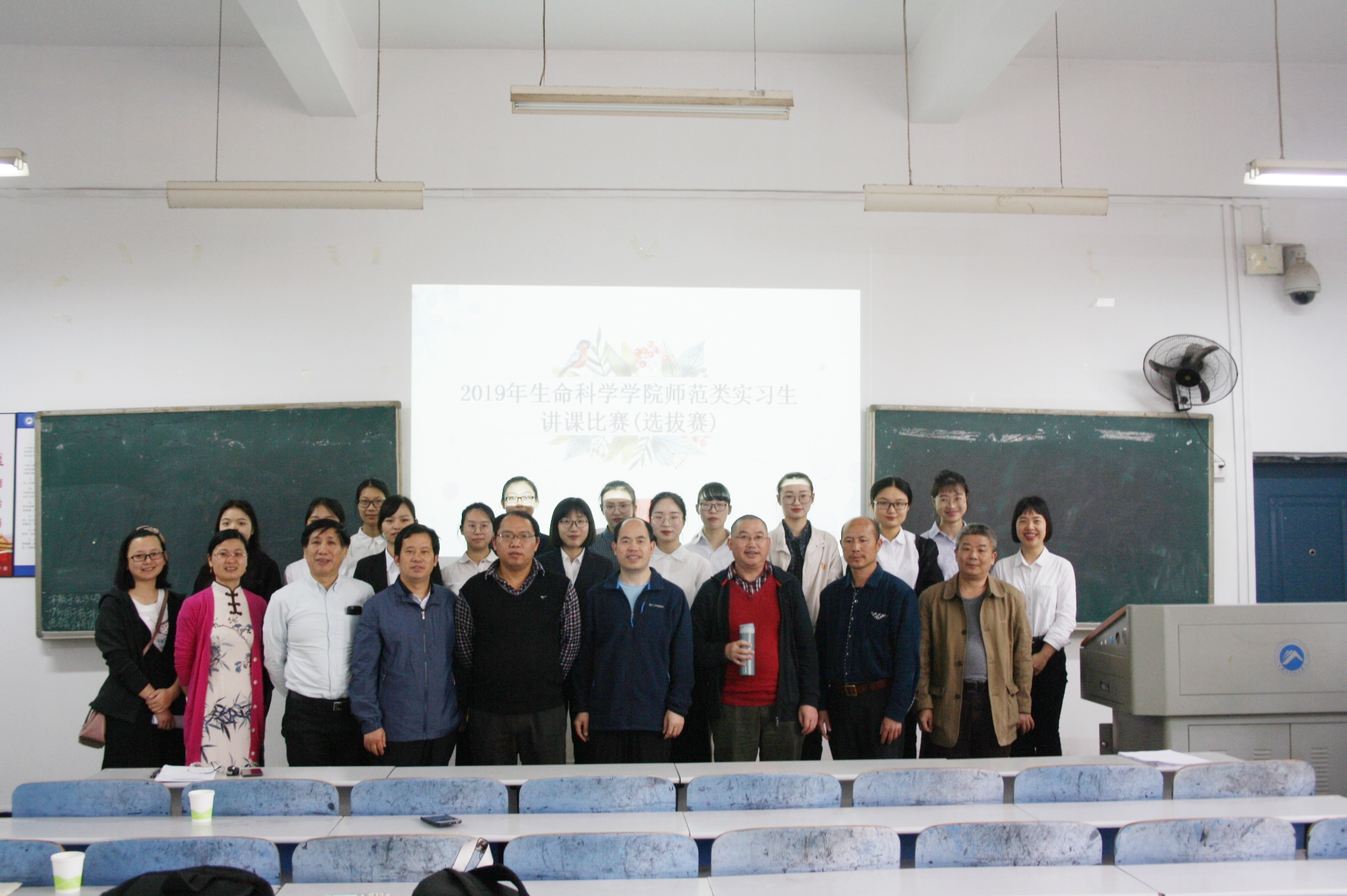 师范类实习生讲课比赛(选拔赛)于4月20日在八教1-2顺利举行。本次大赛共有14位实习生参加比赛,到场的评委有孙远东、谭新中、彭喜旭、谭立军、易俗、李自君、李光明共七位老师,同时17级生物科学专业与18级生物科学及公费专业部分同学也到场观摩。