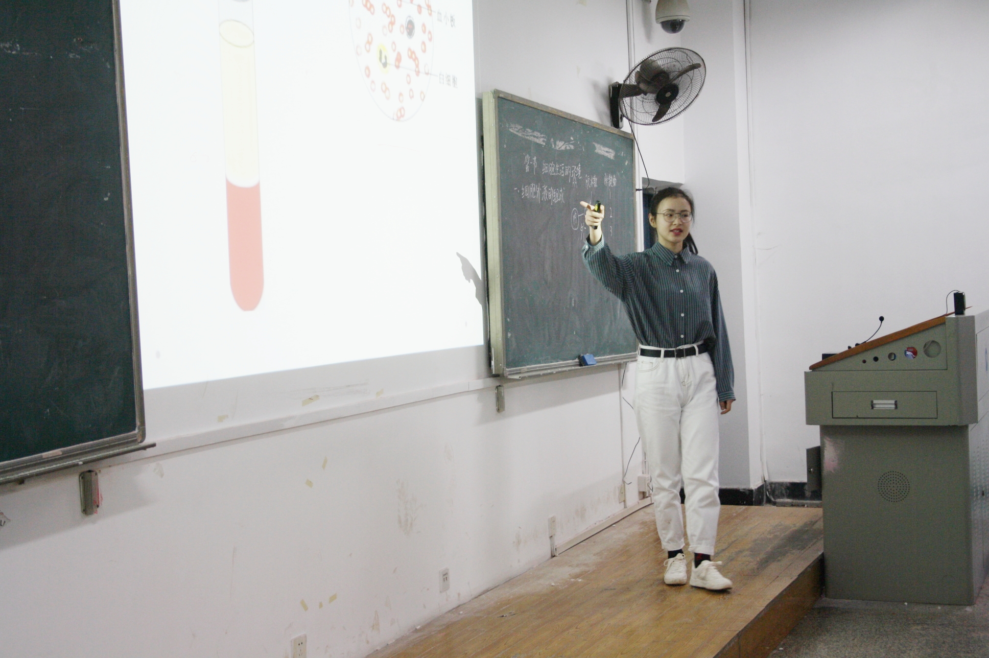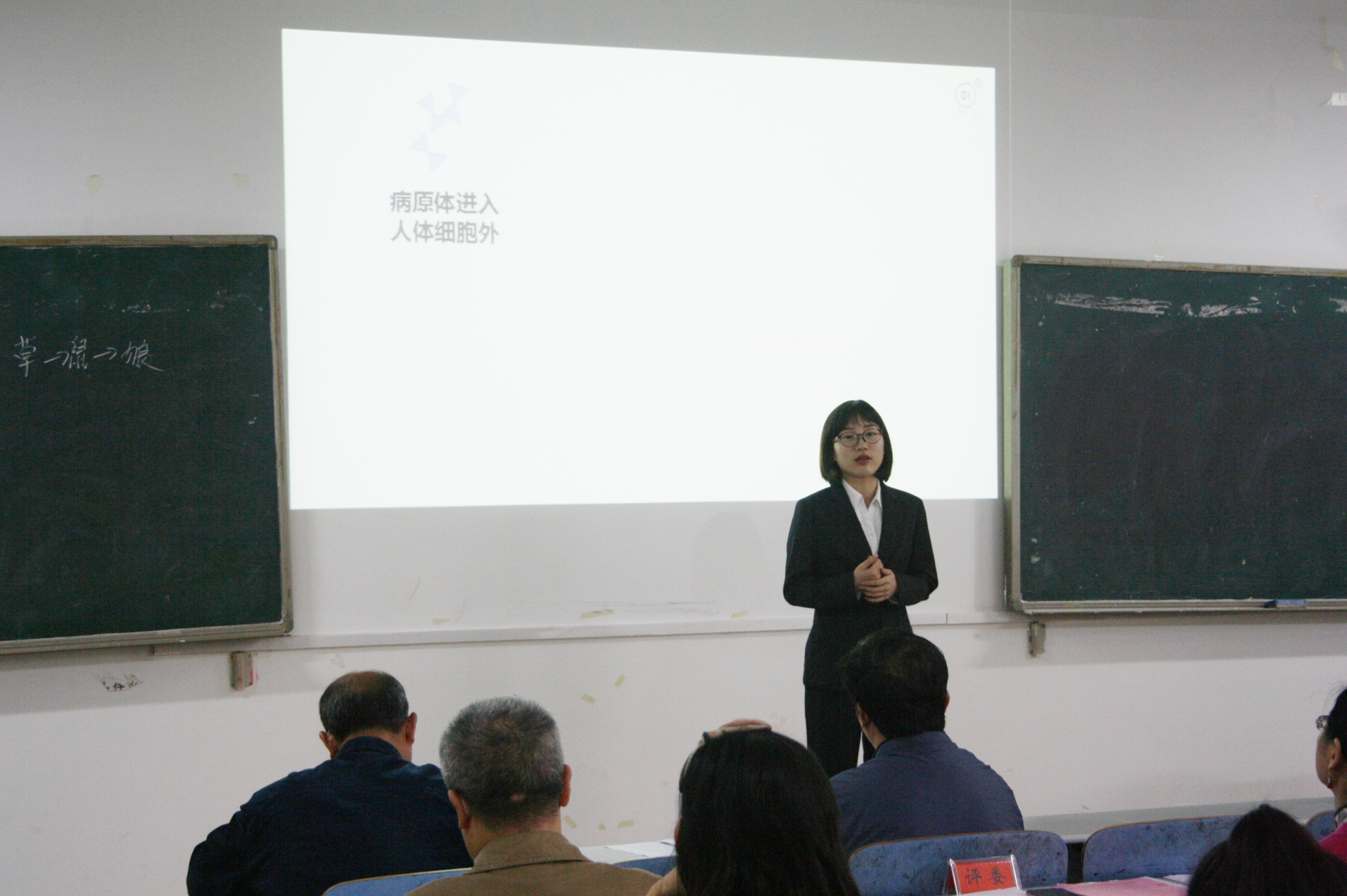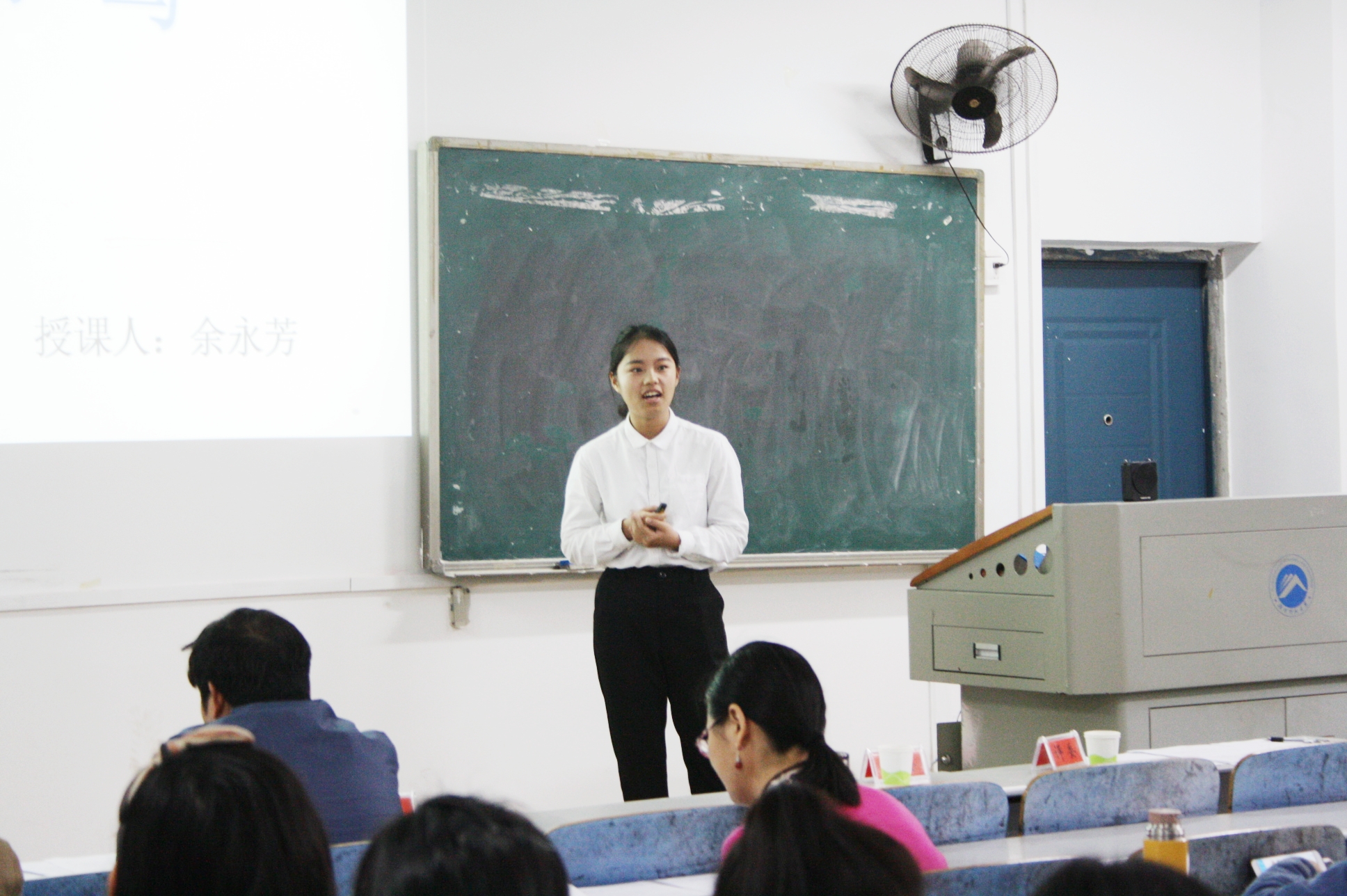 而选手邹择芬则是通过与师生互动环节提出了“脱发是90后面临的最大问题”从而引出讲课的主题“细胞分化”,她将教学与生活相结合,并且她的讲课语言表达准确精炼,讲解生动富有逻辑。最后在一片掌声中完成了讲课。