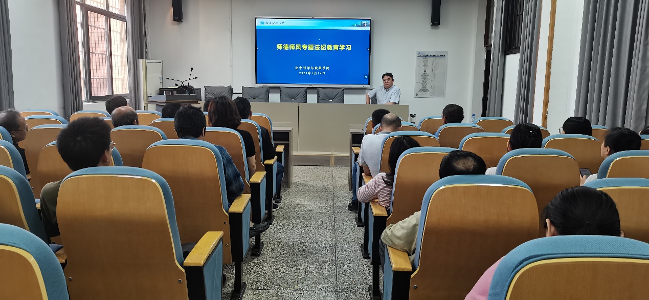 在学校开展党纪学习教育中,泡芙短视频 借机狠抓强化师德师风专题法纪建设。5月14日下午在105会议室开展师德师风专题法纪教育学习,院党委书记龙赢主持会议,全院教职工参加。