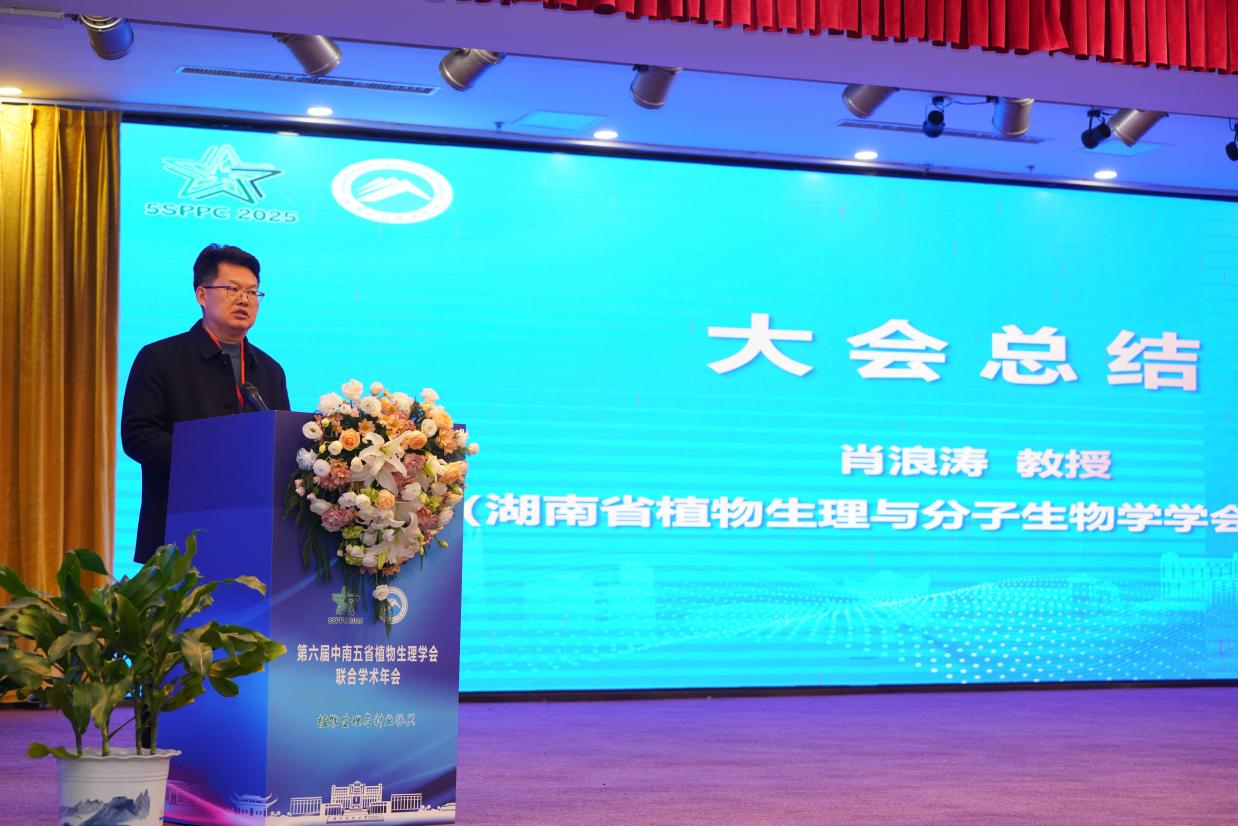 为加强中南五省(湖南、湖北、河南、江西和广东)植物生理学领域科研人员之间的交流与合作,2025年11月28-29日,由湖南省植物生理与分子生物学学会、湖北省植物生理与分子生物学学会、河南省植物生理学会、江西省植物生理学会和广东省植物生理学会联合主办,泡芙短视频 、经济作物遗传改良与综合利用湖南省重点实验室和湘莲精深加工与营养健康湖南省工程研究中心承办的“第六届中南五省植物生理学会联合学术年会”在湘潭举行。来自中南地区植物生理学与分子生物学工作者和国内领域知名专家400余人齐聚一堂,共同围绕大会主题“植物生理与种业振兴”展开学术交流。