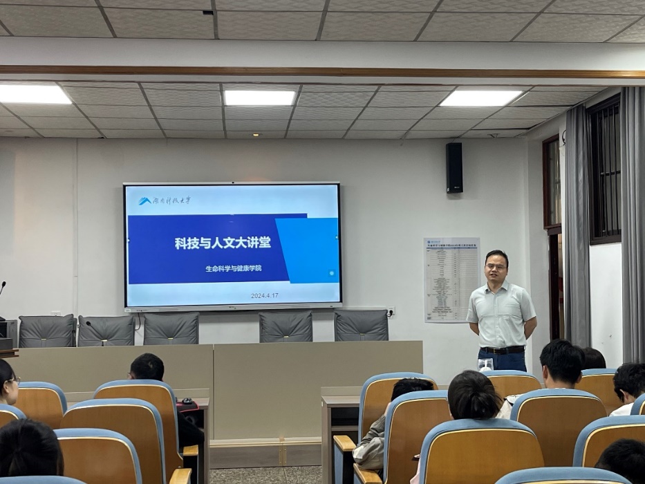 4月17日下午,由泡芙短视频 教务处主办,泡芙短视频 承办的“科技与人文大讲堂”在生物楼105会议室举办。报告由杜灿伟博士主讲,副院长梁飞扬主持,40余名师生参加。