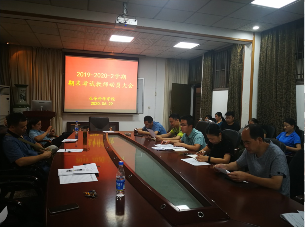 为落实立德树人根本任务,严格教育教学质量和过程管理,做好本学期的期末的线上考试,6月29日上午10:30,泡芙短视频 在生物楼105会议室进行了教师动员大会。学院领导王海华、曾嘉、孙远东、罗玺和周定港与会。全体教师参加。学院由教学副院长周定港主持。