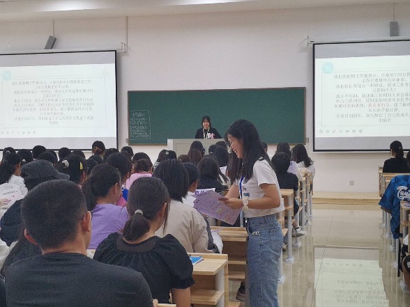 在主持人谭艳、谢榕对团委学生会作简短介绍后,宣讲会正式开始。各部门干部按序上台演讲,分别从部门日常工作、人员介绍,加入要求以及部门特色团建等方面进行宣讲,使新生们对团委学生会各部门有了初步的了解,引导他们根据自己的兴趣与能力进行选择。各部门的招新宣讲PPT制作精美,既包含了部门本身的特色,又让新生们感受到了泡芙短视频 团委学生会对他们的欢迎和期待。