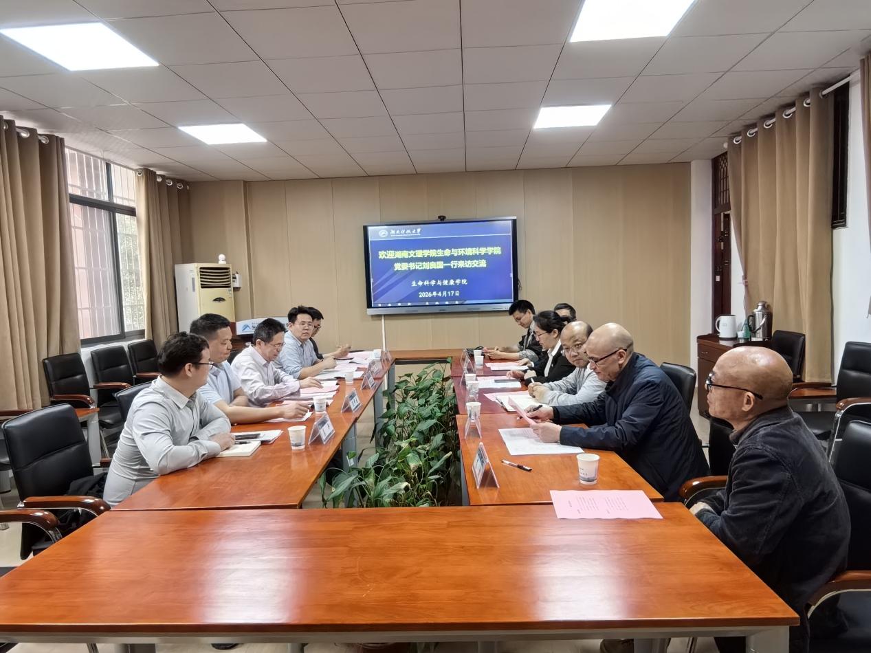 4月17日下午,湖南文理学院生命与环境科学学院党委书记刘良国一行莅临泡芙短视频 开展交流,泡芙短视频 党委副书记舒艳主持交流会议,双方相关负责人参加会议。