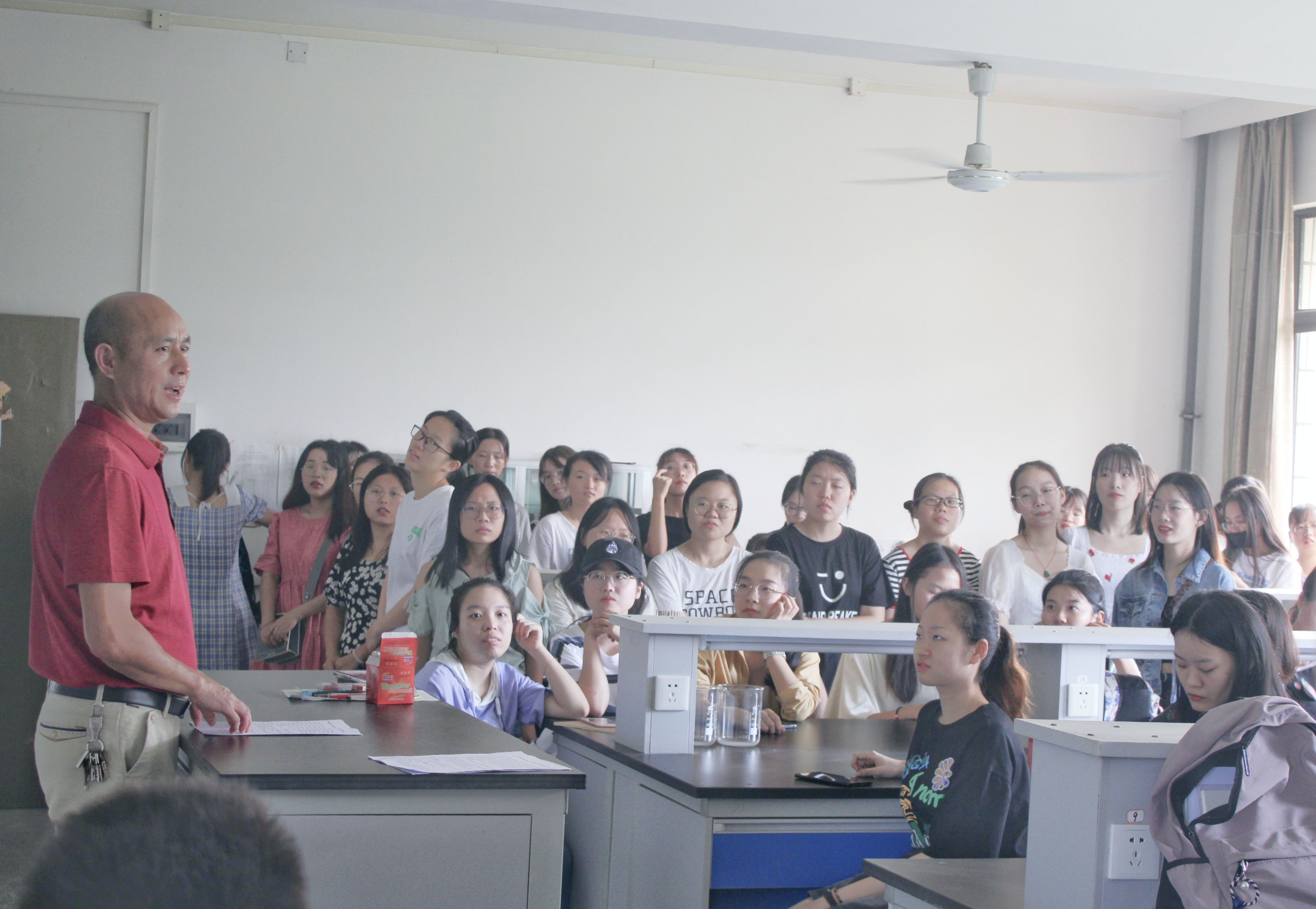 伴随着十点铃声的响起,热闹的502立马安静了下来,动员大会开始了。大会伊始,谭新中老师和“疫”别数月的同学们互相寒暄,在融洽且欢乐的氛围中,他简短介绍了本次实习的主要安排以及各学校指导老师。接着,谭新中老师详细介绍了实习的各种安排,包括课时安排、教学要求、仪表形象和实习总结等,并着重强调要把安全放在第一位。 继而系主任张大为博士详细讲解了有关实习教学的各种细节,且告知了同学们第六届教学技能大赛的相关信息。